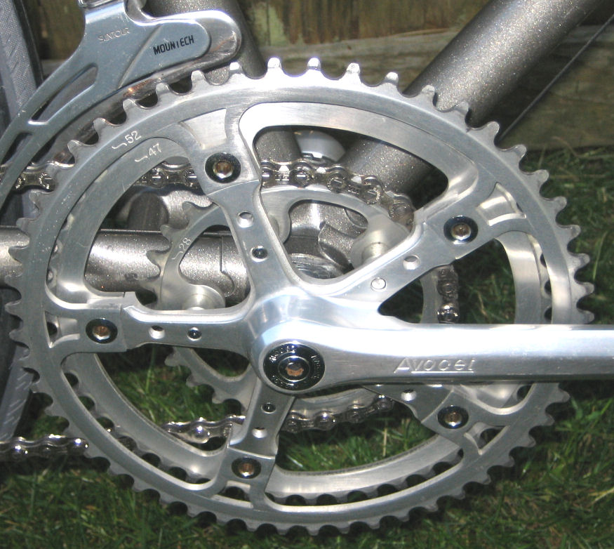 them. Gearing is 52/47/28 half-step plus granny. The larger chainwheels