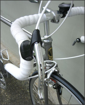 The hoods are black Campy copies. I found the hoods rather hard to install,