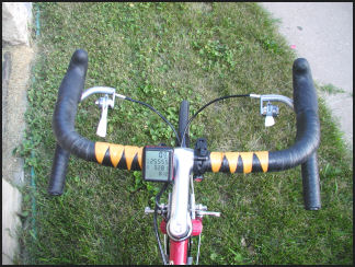 "The bar tape was wound in a harlequin pattern - found at: http://www.wastedlife.org/bike/harlequin/index.html.